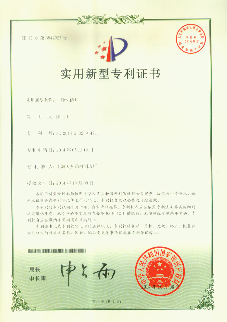 本实用新型提供了一种洗碗片,包括基体、清洗片层和亮碗块,基体的内部设置有亮碗块,亮碗块的表面包覆有第一清洗片层;基体的外表面包覆有第二清洗片层,第二清洗片层上开设有槽孔或槽环、或第二清洗片层和基体的外表面上开设有槽孔,其中开设在基体上的槽孔贯穿第二清洗片层;槽环和槽孔内嵌入有亮碗块;第二清洗片层的外侧刻有凸起和/或凹入的文字。本实用新型提供的洗碗片在基体的内外均设置有清洗药剂和亮碗药剂,可实现一定缓释释放,提高清洗的效率;同时采用了弧形设计,让使用者能够更好进行拿捏。